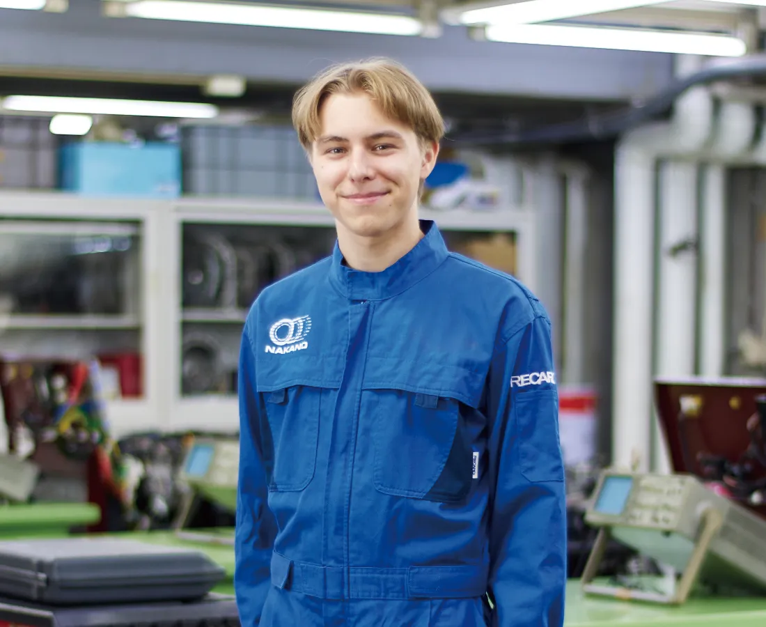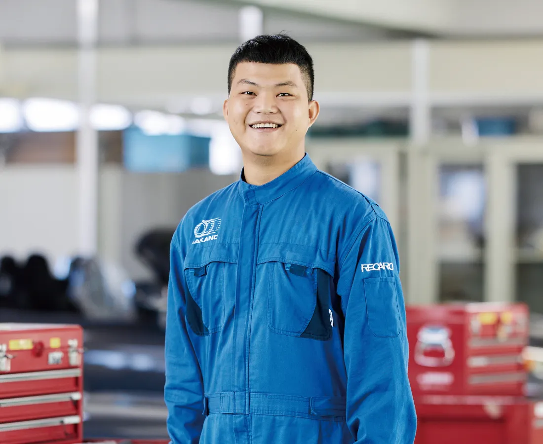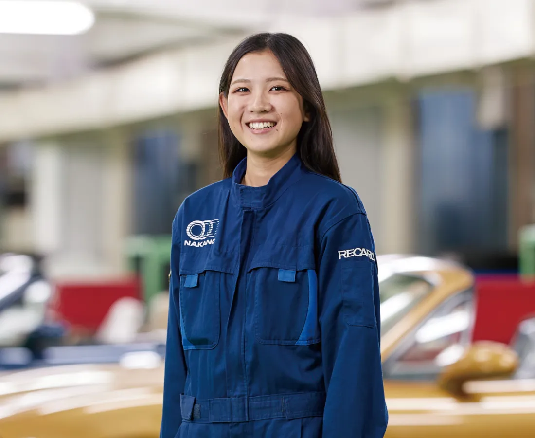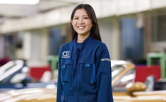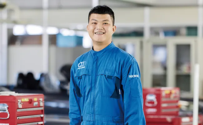 幼い頃から自動車に興味を持ち、将来は自動車整備士になることを夢見て、この学校に入学しました。ここではいろいろな車両を整備する機会があり、幅広い経験を積むことができます。特に実習場での学びがわたしにとって魅力であり、実習の授業は最も楽しみな時間です。現在は二級の国家試験に向けて対策をおこなっており、授業に集中して取り組んでいます。