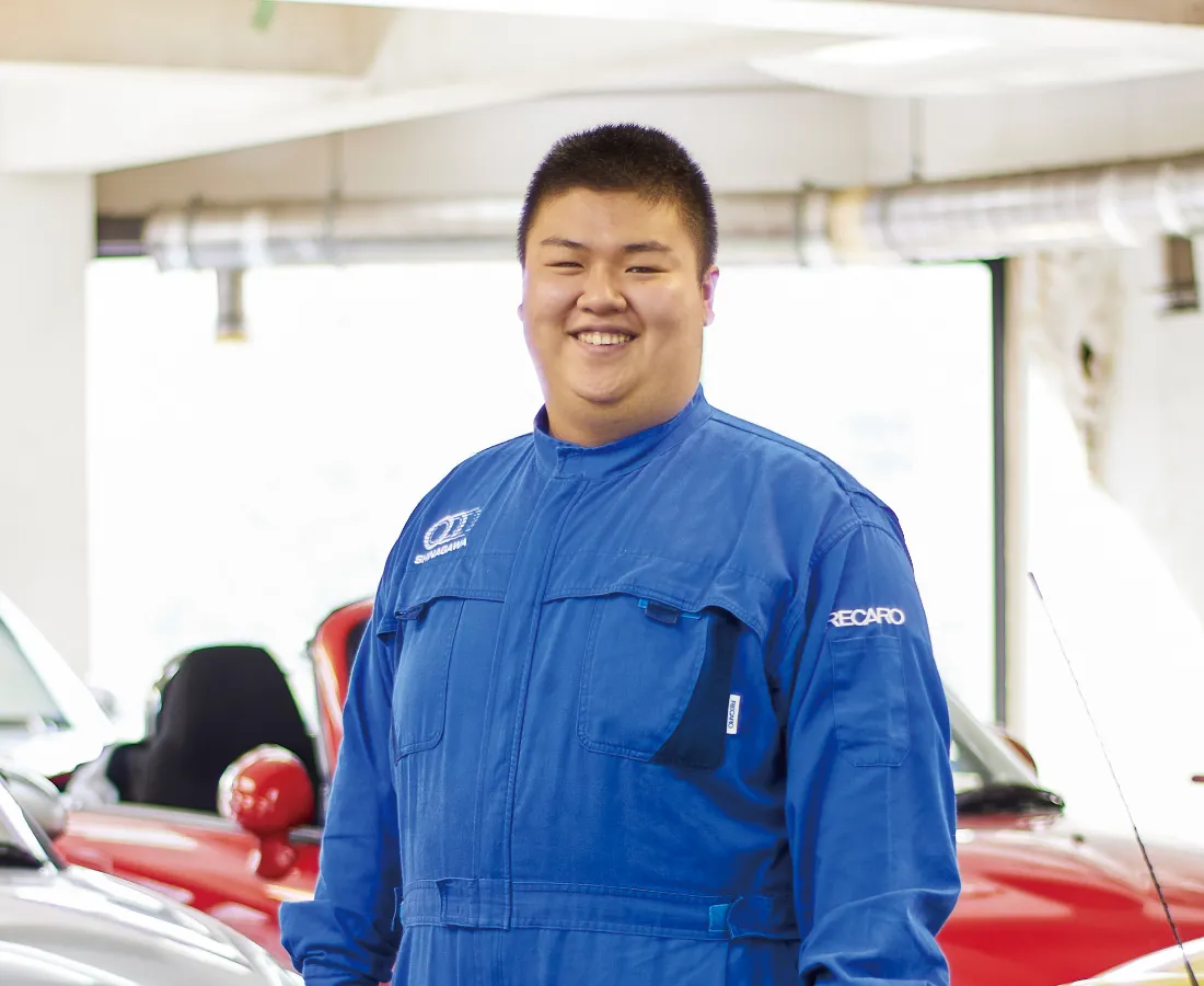 父が経営している工場の将来を考えるうちに自動車業界に興味が湧いてきて、今は大学に通いながら車関係のアルバイトをしつつ夜間の勉強をがんばっています。この学校が唯一「夜間課程」があったので選んだのですが、授業終わりの確認テスト(授業カルテ)とサブテキストのおかげで自主勉強がしやすく、ここに決めてよかったです。業界のことについて右も左もわからずに入学した自分にとって、この学校は強い味方でした。