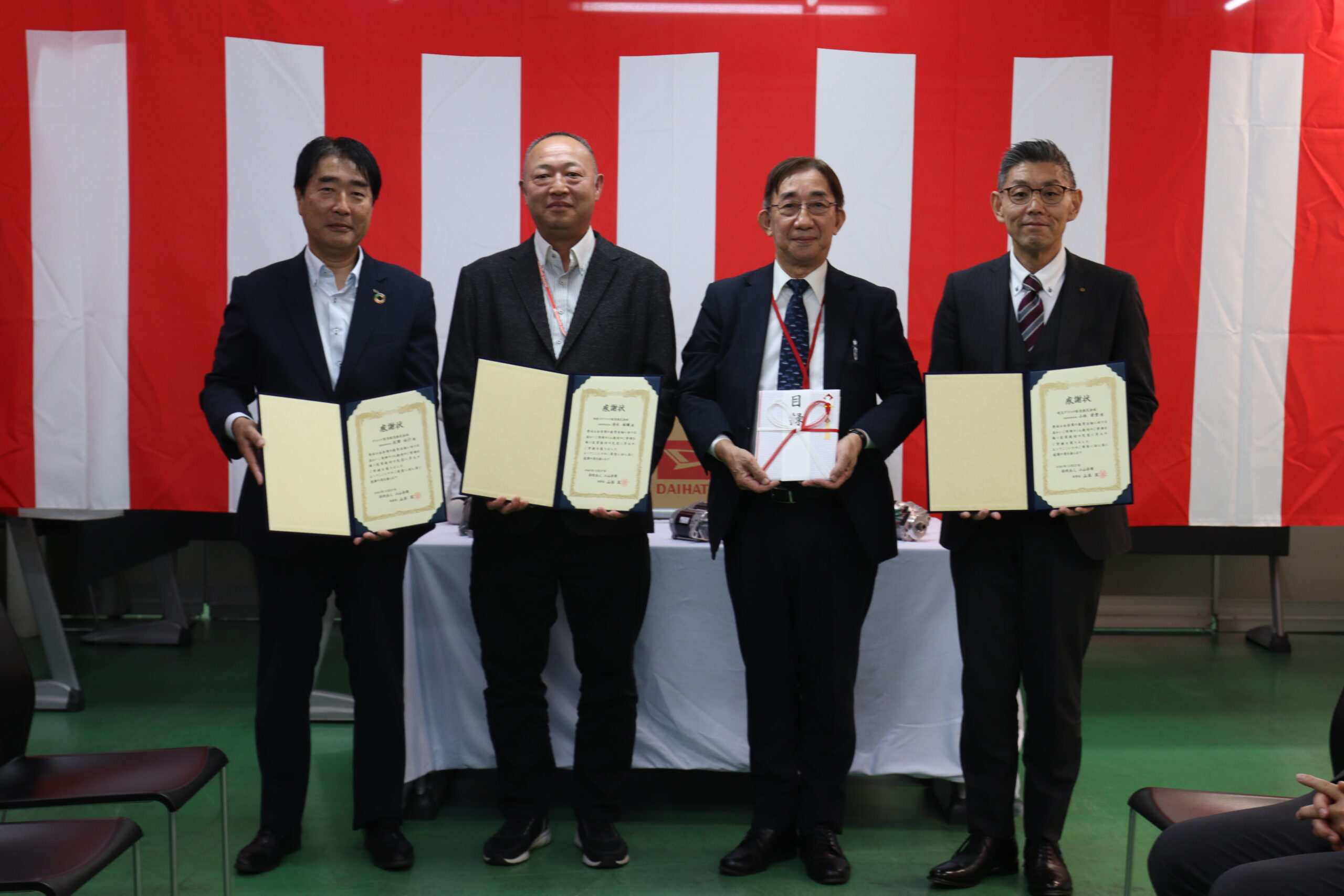 左から、ダイハツ東京販売㈱ 大沼専務取締役、神奈川ダイハツ㈱ 鈴木執行役員、東京工科自動車大学校運営本部 佐藤本部長、埼玉ダイハツ販売㈱ 折笠様