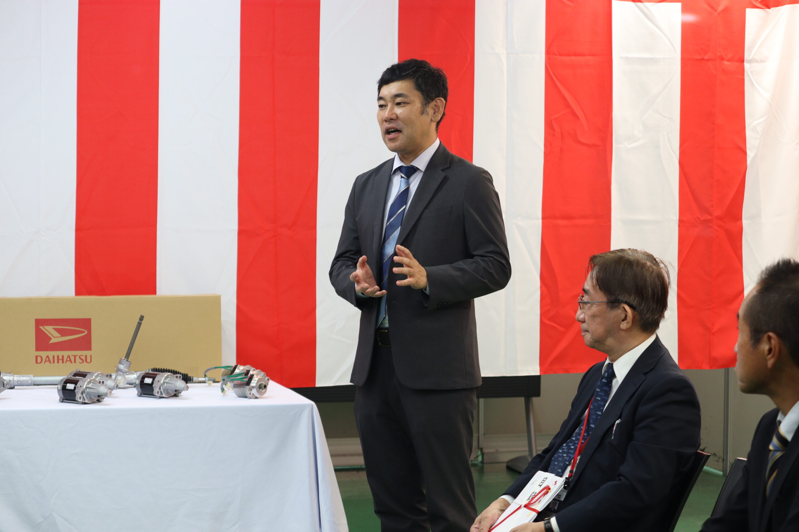 式典では、ダイハツ東京販売株式会社 専務取締役 大沼 正和様より「自動車業界を支えるのは数多くの自動車整備士であり、その育成に尽力されている御校で学ぶ学生の皆さんに、本教材をぜひ活用していただきたいです」との温かいお言葉を頂戴しました。