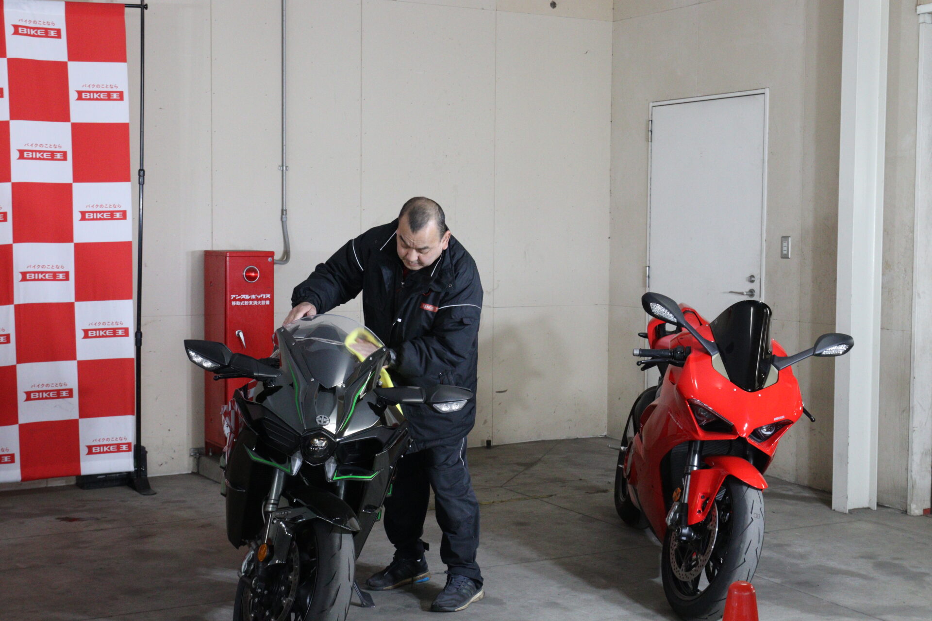 学生が到着する前には、バイク王スタッフの皆さまが試乗車を一台一台磨きあげるなど、万全の準備をしてくださいました。