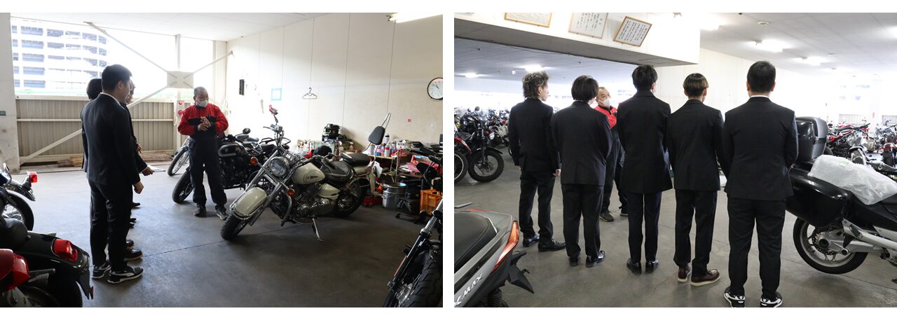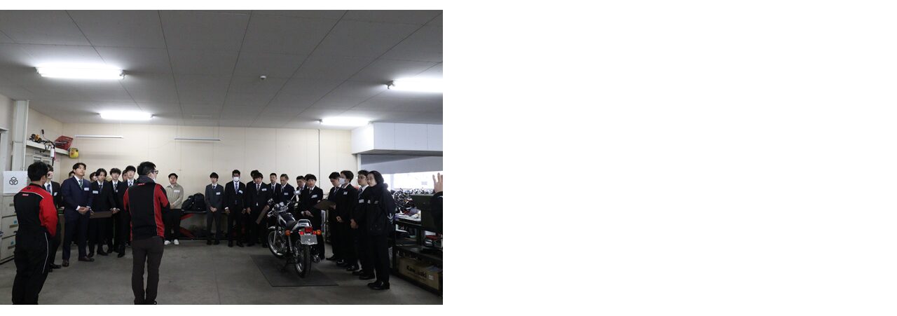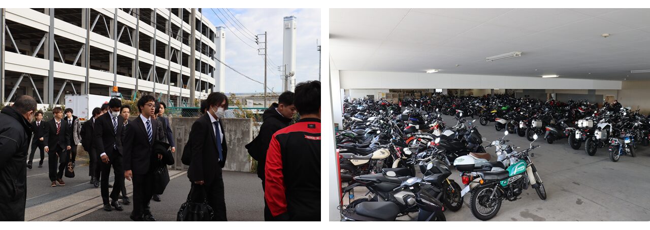 学生からは、「見学をとおして現場の規模や雰囲気を直接感じることができ、非常に良い刺激になりました。担当の方の説明が丁寧で、実務のイメージがより明確になりました」「買取されたバイクがどのように整備し出品されていくのか、具体的な作業内容や1日あたりにその作業を仕上げる台数まで詳しく知ることが出来て、仕事のイメージが掴めました」などの声が聞かれました。