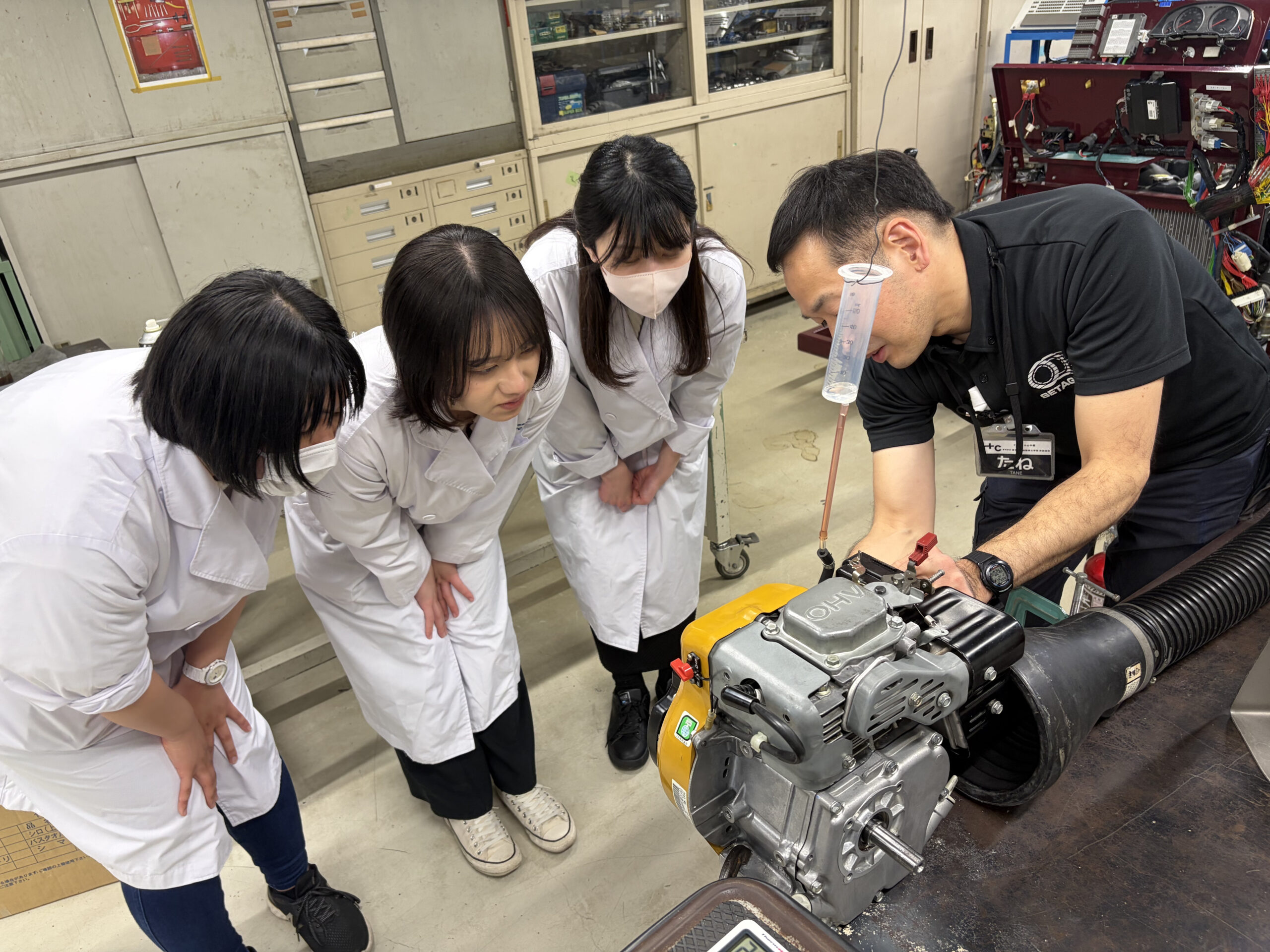 今回の授業では、当初はエンジン始動実験のみを予定していましたが、学生たちの努力の成果により、エンジン始動にとどまらず、アイドリング安定試験まで実施することができ、大変充実した時間となりました。自動車についての知識と技術は十分に持っている東京工科自動車大学校の学生たちですが、バイオテクノロジーの分野についてはほとんど知識がない状態です。ですが、異なる分野について専門的に学ぶ同期が身近にいること、そして一緒に何かを研究する機会があることはTTCならではであり、改めて素晴らしい関係性だと感じています。卒業後に社会へ出た際にも、部署の垣根を越えて協働する姿勢や、さまざまな立場の人と関わる工夫を忘れずにいてほしいと思います。